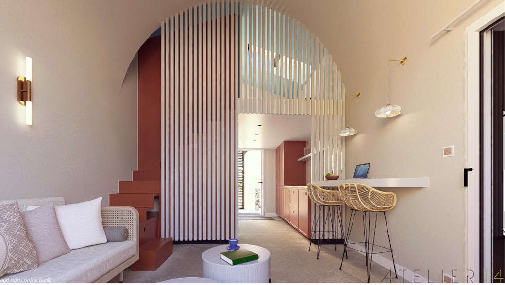 L’aménagement définitif pourra présenter de légères différences, mais nous mettons tout en œuvre pour que l’esprit de L’Archette reste fidèle à ce que vous découvrez ici.